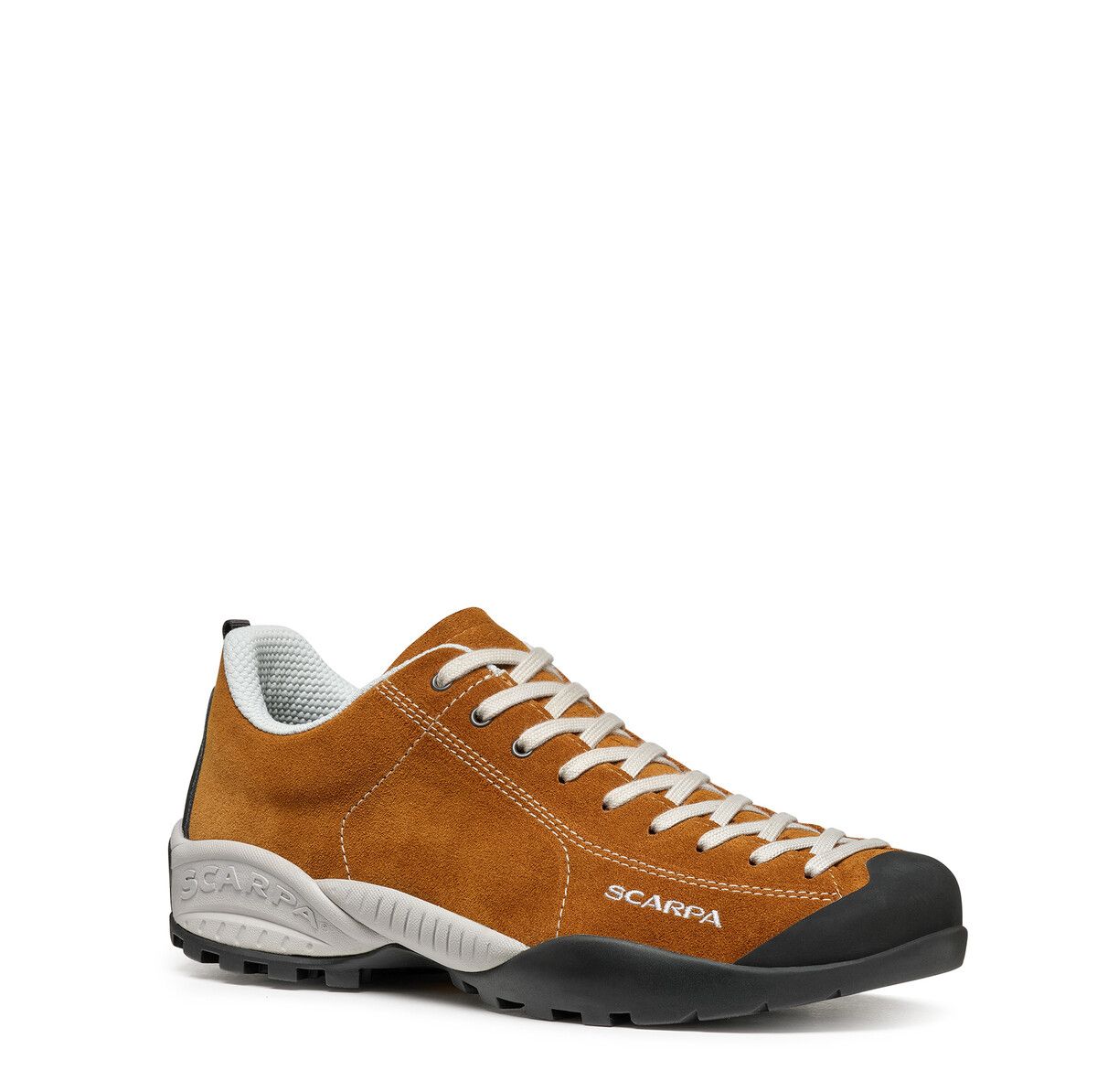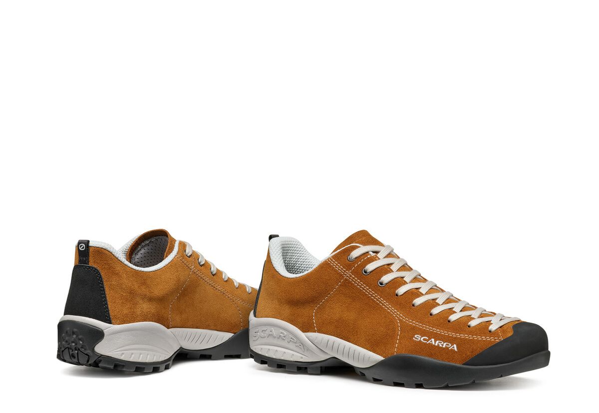Das Obermaterial des Scarpa Mojitos besteht aus 100% hochwertigem Suede Leder, das in zahlreichen frischen Farbkombis daher kommt. Das Leder ist atmungsaktiv, leicht und angenehm zu tragen, gleichzeitig aber auch robust und schützt den Fuß vor Wind und Wetter. Der Mojito hat eine extra lange Schnürung, um den Schuh so genau wie möglich an deinen Fuß anpassen zu können.
